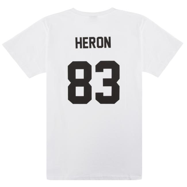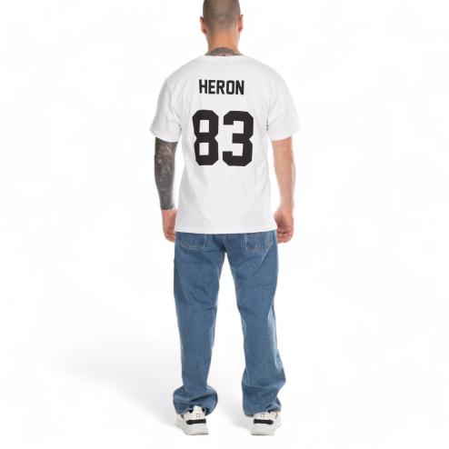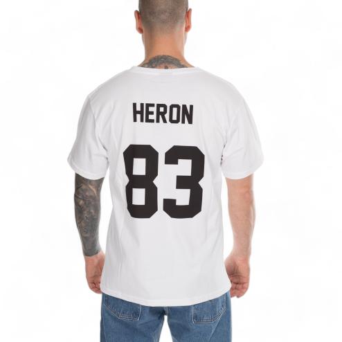 LES(ART)ISTS t-shirt heron 83 bianca da uomo in pregiato cotone con stampa nero a contrasto sul retro, patch logata sul fondo nella parte anteriore, vestibilità regolare.
