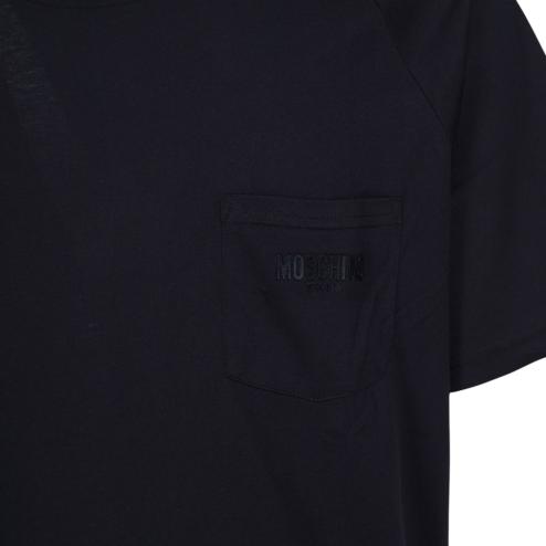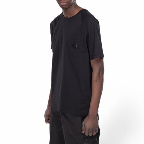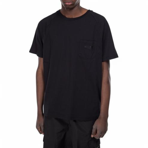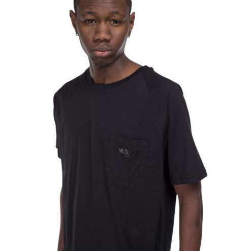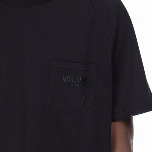 T-shirt uomo girocollo in cotone nero con logo swim gommato nero su taschino.