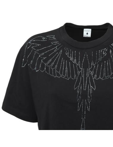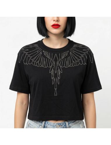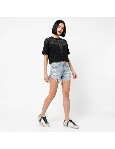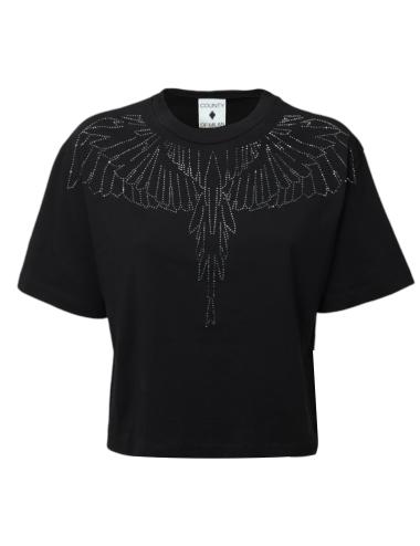 T-shirt nera del noto brand County of Milan crop con pietre.