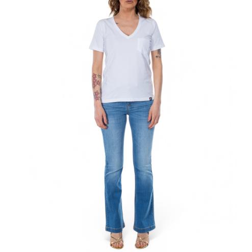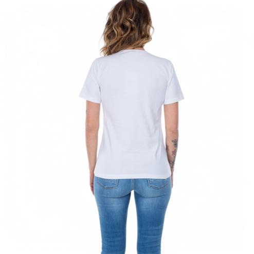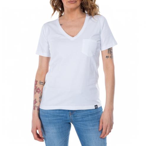 Maglia bianca a maniche corte con scollo a v e taschino.