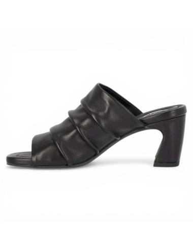 Sandali da donna dal design contemporaneo, realizzata in morbida nappa nera che valorizza il piede con un effetto elegante e minimale. Effetto arricciato sul davanti, dettaglio distintivo che aggiunge movimento e carattere al modello.