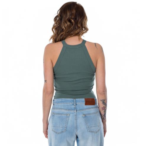 Canotta verde a costine, logo a contrasto di colore nero, vestibilità regolare.