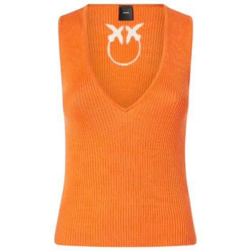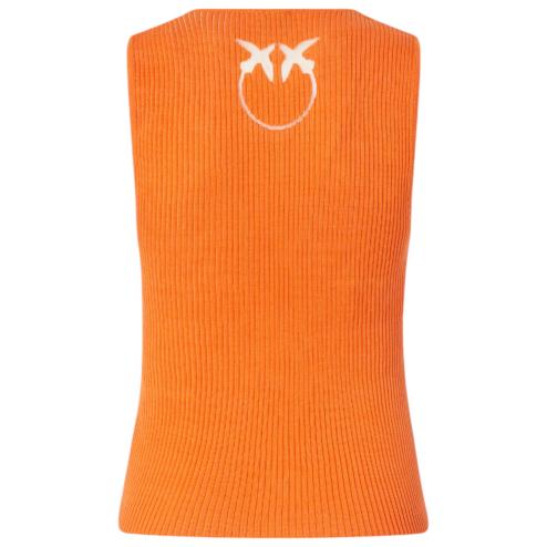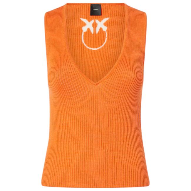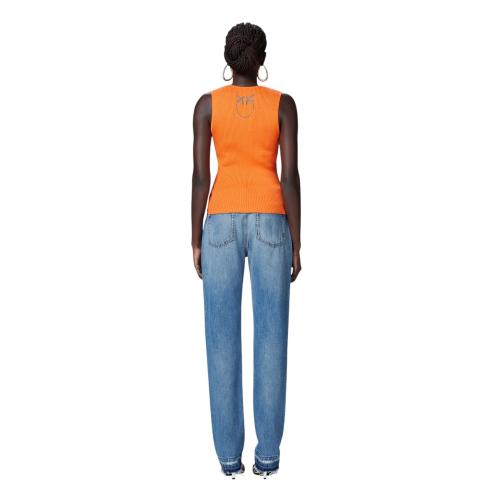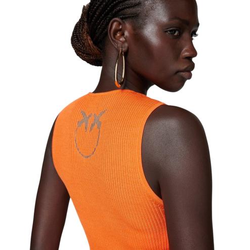 Il top senza maniche di Pinko, dalla linea aderente, è realizzato in maglia lavorata a costine di misto seta e cotone, garantendo una sensazione di lusso e comfort. Il dettaglio distintivo è l'intarsio del logo Love Birds nel centro del retro, lasciato in trasparenza, conferendo un tocco di eleganza e femminilità al capo. Perfetto per creare look sofisticati e chic, questo top aggiunge un tocco di glamour a qualsiasi outfit.