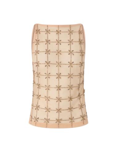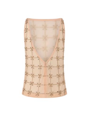 Top smanicato in tulle con cristalli