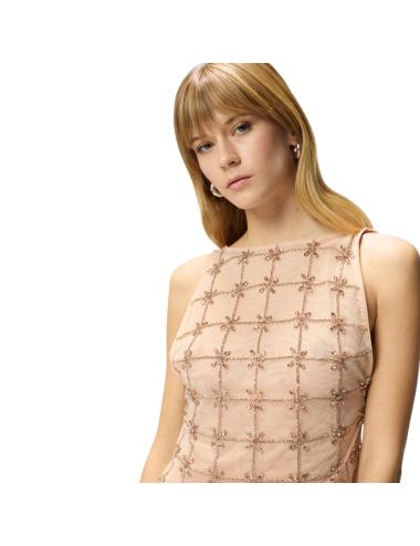 Top donna rosa cipria con ricami luminosi