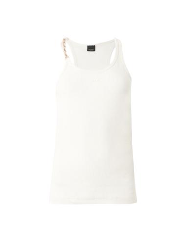 Pinko canotta a costine beige con catena